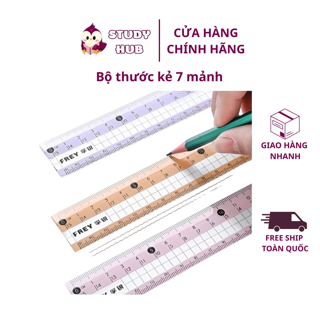 Với 7 loại thước đa kích thước, bạn có thể đo, kẻ line, vẽ tam giác, thang đo, thậm chí các chi tiết nhỏ phức tạp một cách chuẩn xác. Chất liệu bền, trong suốt giúp bạn quan sát rõ đường kẻ, thao tác mượt mà, không lo gãy hay trầy xước.