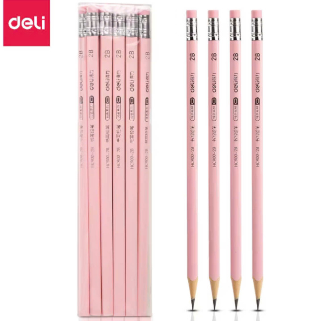 Vỉ 10/12 Bút Chì Gỗ 2B – HB Deli – Chì Đậm, Viết Êm, Dành Cho Học Sinh