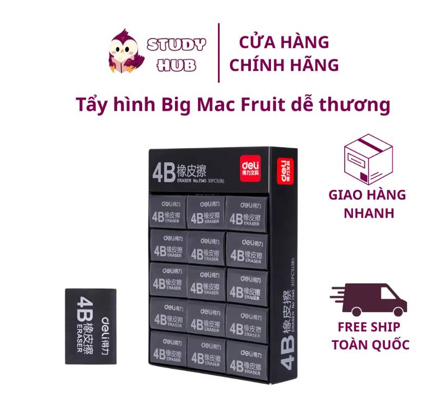 Gôm Tẩy Chì 2B / 4B Deli Màu Đen Tẩy Sạch Ít Vụn Tẩy Nhỏ Gọn - Phù Hợp Học Sinh, Sinh Viên, Văn Phòng Vẽ Thi Trắc Nghiệm
